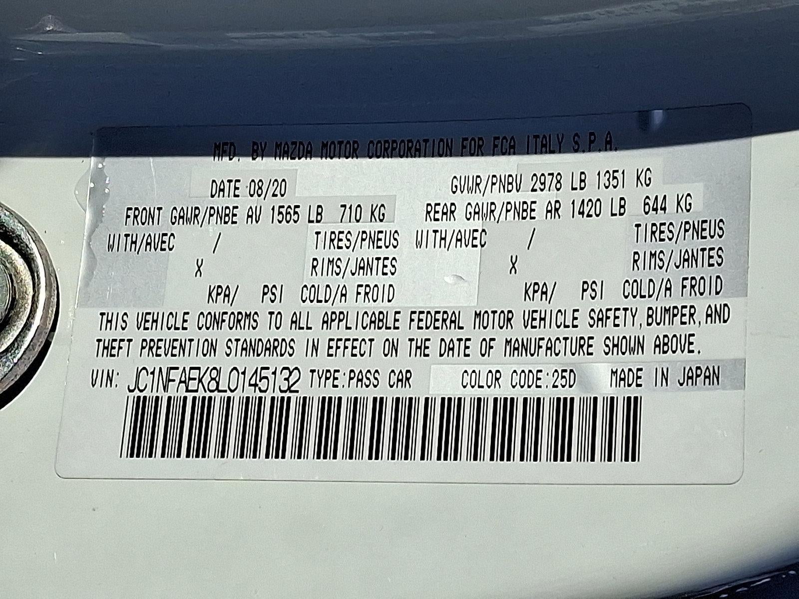Puro White Tri-Coat Pearl 2020 Fiat 124 Spider Abarth RWD 6-Speed Aisin Automatic 1.4L I4 16V MultiAir Turbocharged
