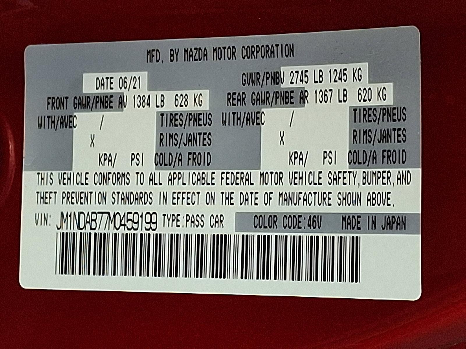 - Vehicle Name: Mazda MX-5 Miata