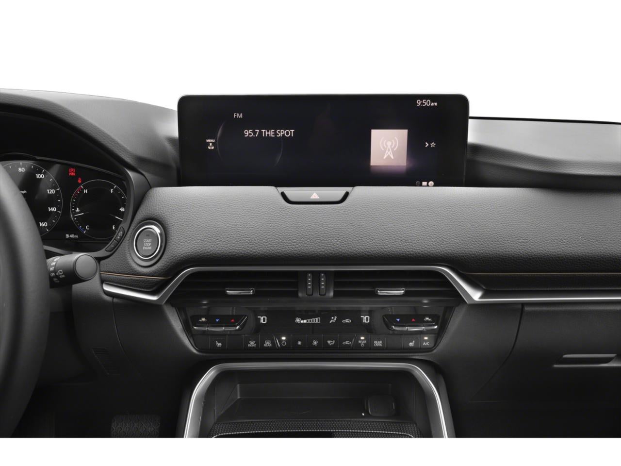 Step into the luxurious cabin of this CX-70 and experience the epitome of refined craftsmanship. The leather-wrapped steering wheel, heated front seats, and Bose Premium Audio Sound System create an unparalleled ambiance, while the intuitive Mazda Connect infotainment system keeps you connected and entertained.